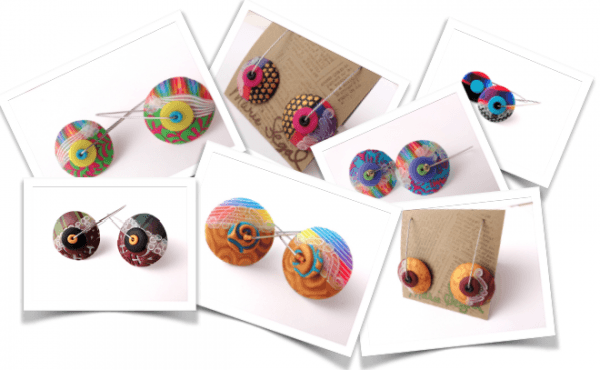 This is a great introduction to polymer clay, jewelry and mica powders. The same techniques can be used to incorporate polymer clay into mixed media and collage work as well, and mica powders can be combined with many other mediums for an iridescent shimmer.