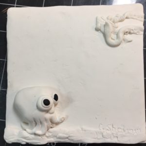 So.. I rolled out a sheet of clay as the background and sculpted my little guy. He’s actually based on this video I saw of a cute little purple creature commonly known as the stubby squid. (Even though he’s not a squid.)