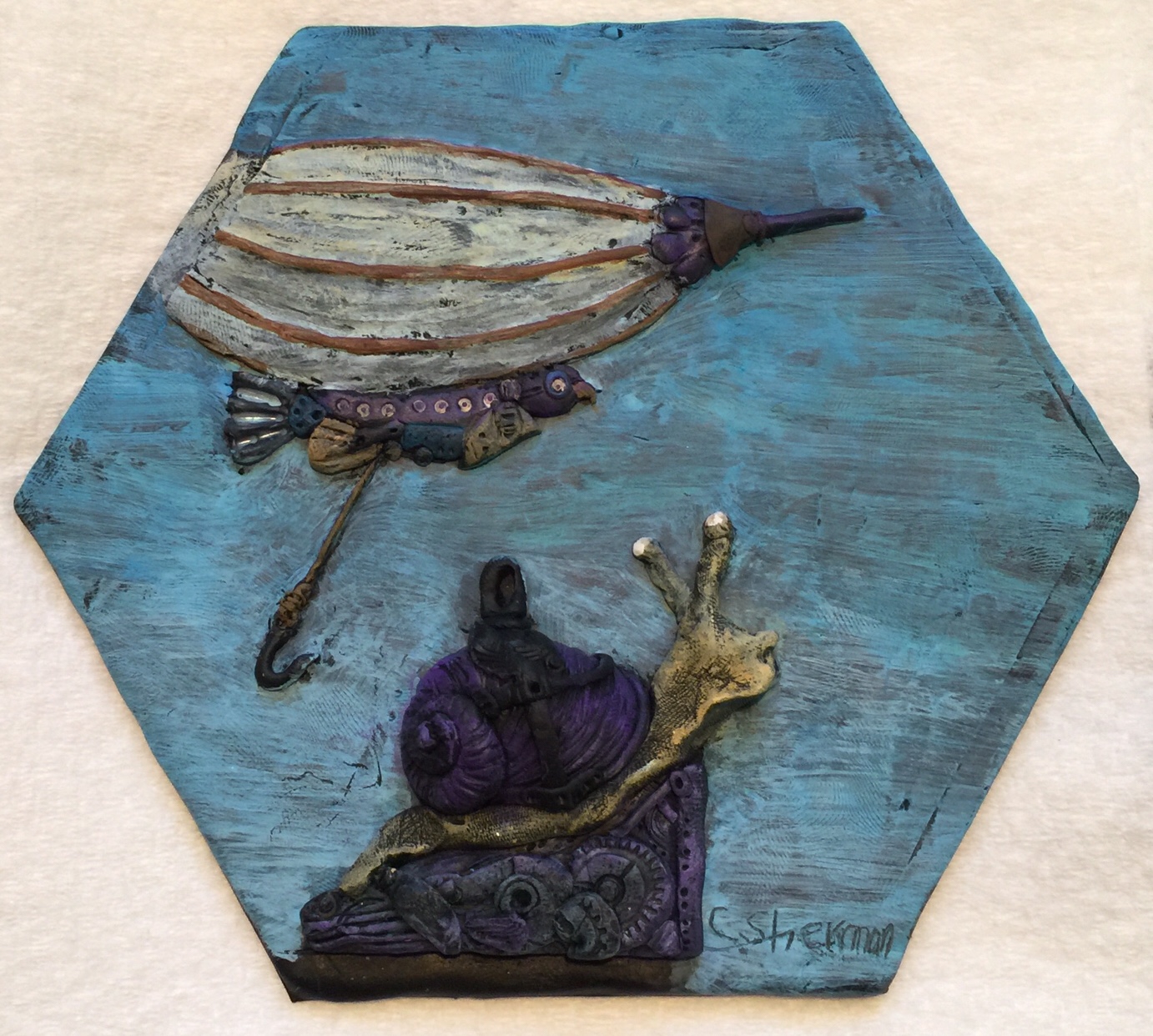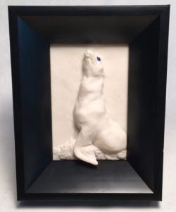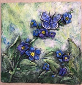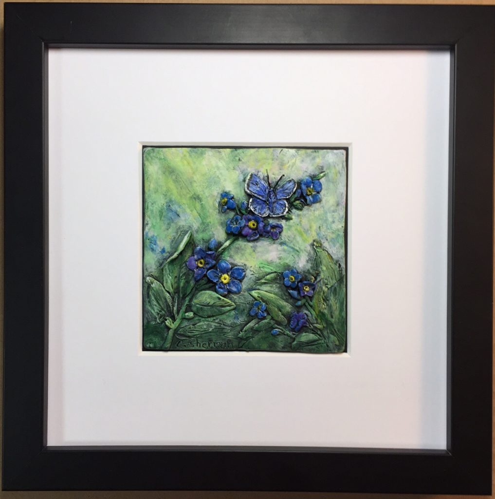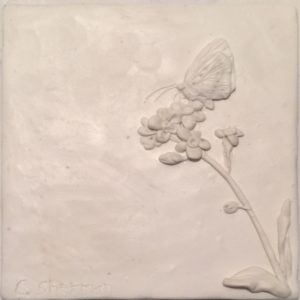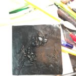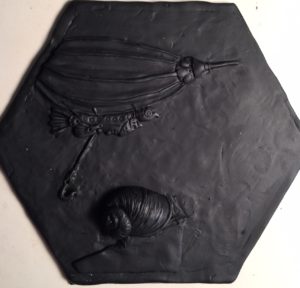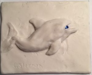 Normally I sculpt on a ceramic tile or glass. It’s hard, flat, and the clay pops off easily after it’s baked. I could have drawn an outline on a large tile and used that, but as you sculpt, the clay smudges and expands. Any lines would be covered and erased and it would be hard to recut them without ruining my sculpture.