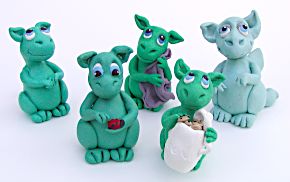Draggles are small elusive creatures often mistaken for dragons in poor light. They thrive on chocolate chip cookies and orange peel. One of their interesting habits is to collect small objects such as pen caps and paper clips which they save for a rainy day in any convenient spot. If you find such a collection, for instance under a couch cushion, you can assume that one of these wonderful creatures is living in the vicinity. Be sure to leave out a chocolate chip cookie every now and then and always cover your polymer clay... Or you may have to smooth out a few claw prints from late night Draggle dancing.
