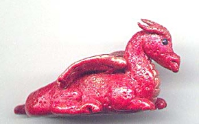 This little dragon was made of red clay with gold Pearlex powder highlights. I marked impressions of scacles with the edge of a coffee stirrer. After he was cured I gave him a coat of future to protect the Pearlex.