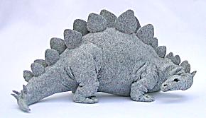 This stegosaurus is made out of grey Granitex with a foil armature to save on clay and baking time. I made the plates for the back first and baked them. That way I could insert them into his back without distorting any of the plates. I textured the surface of the clay with some rough sandpaper to give it more of a stone look.
